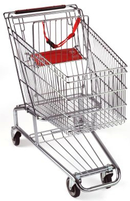 It is important to note that most grocery stores now have billboard ads or a cup holder strategically placed on the back of the toddler seat to prevent a car seat from being able to click into place. This is because putting a car seat on the toddler seat is no longer recommended due to safety concerns.