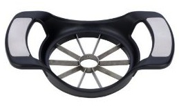 First I cut the apple by using the following apple cutting tool and then cutting each slice it produced one more time with a knife.