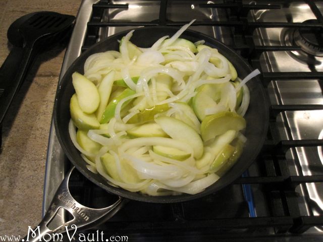 I served this with buttery mashed potatoes that really complimented the tastes well. The chicken was great, much better than I anticipated but I think I would add a bit of Johnnies salt to the onion/apple pan process next time. I also may experiment with using mozzarella because it bakes and reheats nicely. Total prep time is about 15 minutes. This was an excellent meal to make while also caring for my 10 month old!