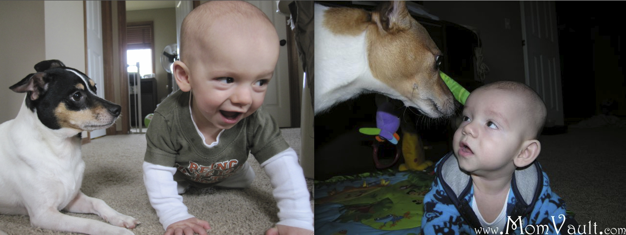Gentle Touches- Teaching gentle touches to an infant is nearly impossible but it doesn’t hurt to try. We taught Dylan from early on that hitting dogs or grabbing their skin/hair is not nice, we would just remove his hand and then reapply it gently and say “Gentle Touches”.
