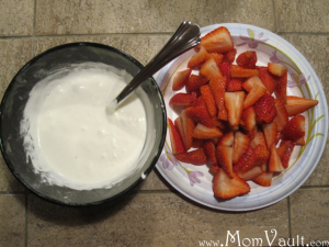 Empty Jet-Puffed Marshmallow Creme into a bowl and stir in the melted butter and vanilla until the jet puff is liquidified. Add the cream cheese 1 Tbsp at a time and add another Tbsp if you want more. Cut up any fresh fruit to dip into it! I recommend strawberries, apples, and Oreos.