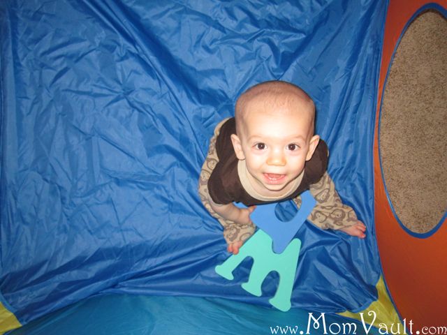Cool Features: The tunnel has velcro that has dual use: it helps store it while collapsed and also attaches it to the opening of the tunnel! It's also really neat that it has the breathable blue mesh that also allows you to see through it.