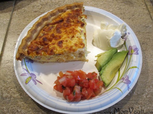 My parents make the best quiche and in fact brought a pie to our house right after Dylan was born so we'd have an easy to reheat breakfast the next morning! It is really easy to make and freezes well!